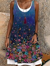 More information about Women's Midi Dress Tank Dress Fashion Classic Outdoor Daily Weekend Regular Fit Graphic Sleeveless Crew Neck Blue Spring Fall