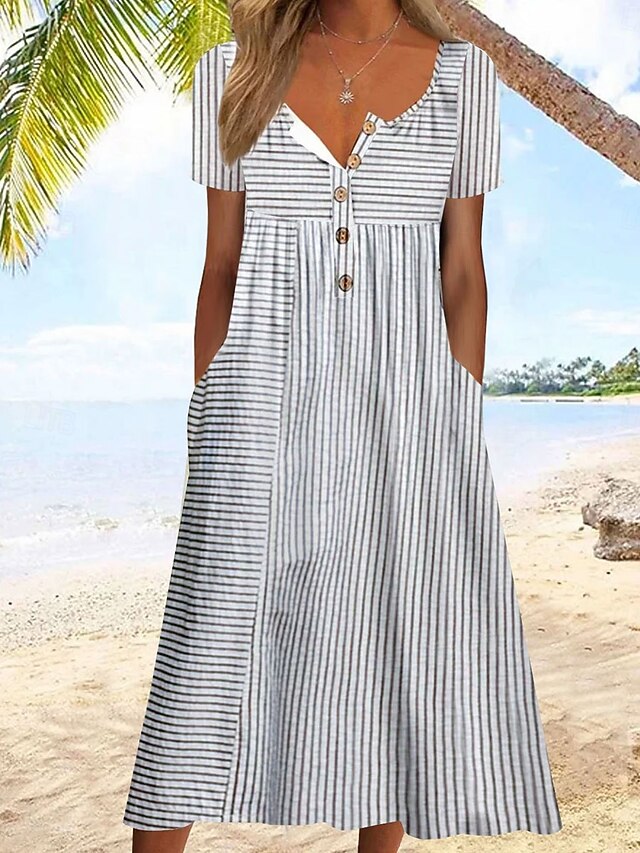 HOT ! Women's Midi Dress Casual Dress Sundress A Line Dress Summer Dress Vacation Casual Beach Holiday Loose Fit Graphic Stripe Short Sleeve Crew Neck Blue Gray Summer