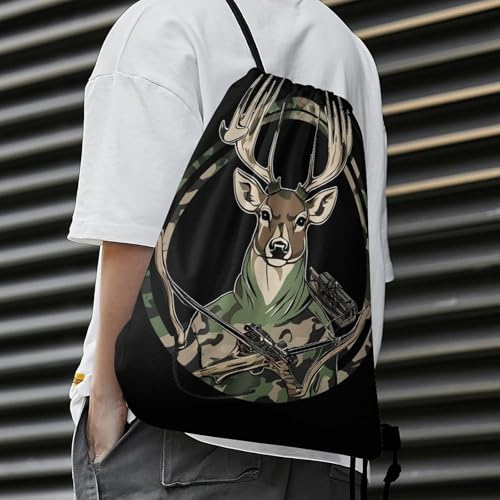 Breathable Drawstring Backpack, Camouflage American Flag Hunting Camo Deer Black Unisex Fashion Waterproof Large Capacity Draw String Bag, Reusable Sackpack with Sturdy Cord for Daily Use 5