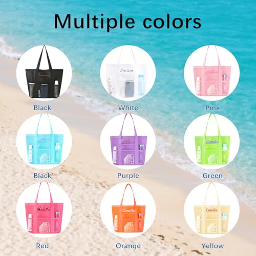 • Unique Personalized Bag: Our personalized tote bag comes in a variety of embroidery colors and font options, the beach bag stands out with the option of personalized embroidery. This large tote mesh beach bag is not only a bag, but also a customized piece that showcases your personal style, making it your exclusive accessory, imagine having a unique design of your own bag when you go on a trip can add some fun to your beach time.