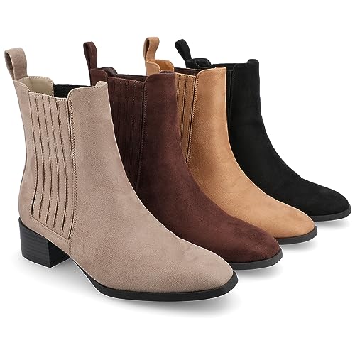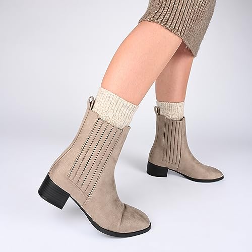 • WRENLEY CHELSEA BOOTIE: The Wrenley booties by Journee Collection are ideal for a relaxed and casual look. With soft and flexible vegan leather, these booties feature a stacked block heel that adds a stylish touch to any outfit. They are designed in a Chelsea style and come with side gore stretch for easy wearing. A square toe, a 10-inch top circumference, and a comfortable 4 mm Tru Comfort Foam insole finish the look.