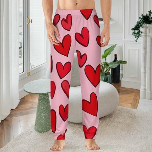 HOT ! Valentine's Day Love Hearts Pattern Men's Pajama Pants Sleepwear PJ Bottoms Lounge Sleep Pant Nightwear