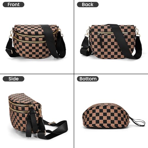 HOT ! Checkered Crossbody Bag Spacious Bum Bags for Women Nylon Crossbody Fanny Packs Checkered Purse Belt Wallet