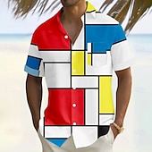 More information about Men's Geometric Grid / Plaid Shirt Casual Shirt Button Up Shirt Short Sleeve Fashion Casual Vacation Holiday Streetwear Summer Turndown 3D Print Front One Pocket Linen Like Shirt White