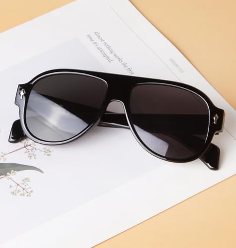 • Classic Aviator Style: Fashionable classic pilot frame with bold closed bridge design,stylish rivets decoration ,shiny plastic materials and UV400 protection lenses,it's both chic and protective for your eyes as a fashion accessory