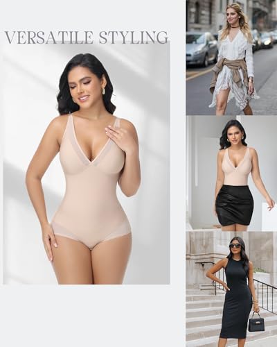 • Sexy V-Neck & Sheer Detail--The low-back Shapewear showcases a stylish mesh V-neck, adding a touch of allure with subtle sheer accents to highlight your curves. Perfect for wearing under low-cut outfits while staying effortlessly feminine.