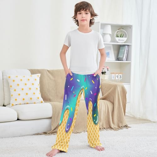 Boy's Pants Mint Blue Ice Cream Jogger Pants Elastic Waist Long Bottoms Trousers with Pockets 6-14 Years 2