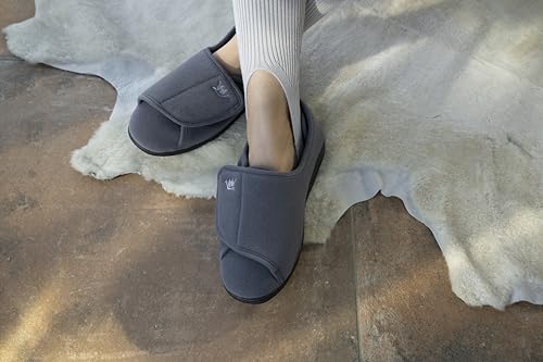 • MULTI ADJUSTABLE MAKES PERFECT FIT: Multi adjustable, secure, easy touch hook and loop fastener strap adjusts to fit swollen feet & ankles. Back adjustable design makes sure the bootie style slippers stay on your feet when walking and fit it perfectly, especially up/down stairs. Diabetes ,Swollen feet , edema , arthritis friendly.