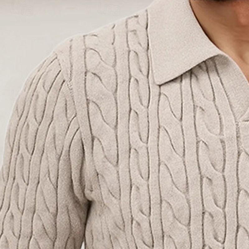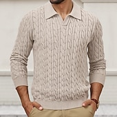 More information about Men's Sweater Pullover Sweater Jumper Cable Knit Regular Tops Knitted Slim Fit Plain Turndown Knitwear Contemporary Casual Daily Wear Clothing Apparel Fall Winter Black Khaki M L XL