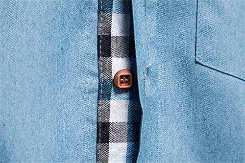 Men's Casual Long-Sleeved Denim Shirt Dress Button Down Shirts Denim Work Shirt Dress Shirt Plaid Collar Shirt 6