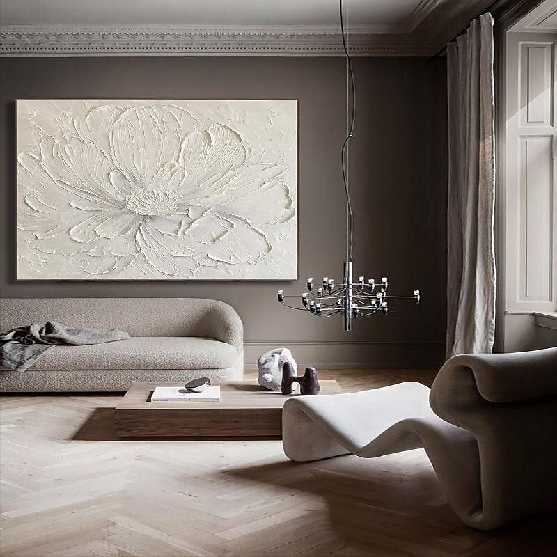 3D Large hand painted White Flower Oil Painting On Canvas handmade Acrylic Painting handmade Heavy Textured Painting Abstract Landscape oil painting Wall Art Floral Wall Decor painting 1