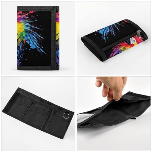 Fashion Slim Beautiful Parrot Splash Ink Art Trifold Wallet, Wallet with Front Pocket Zipper And Key Chain, Wallets for Travel Outdoor 4