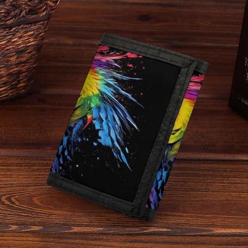 HOT ! Fashion Slim Beautiful Parrot Splash Ink Art Trifold Wallet, Wallet with Front Pocket Zipper And Key Chain, Wallets for Travel Outdoor