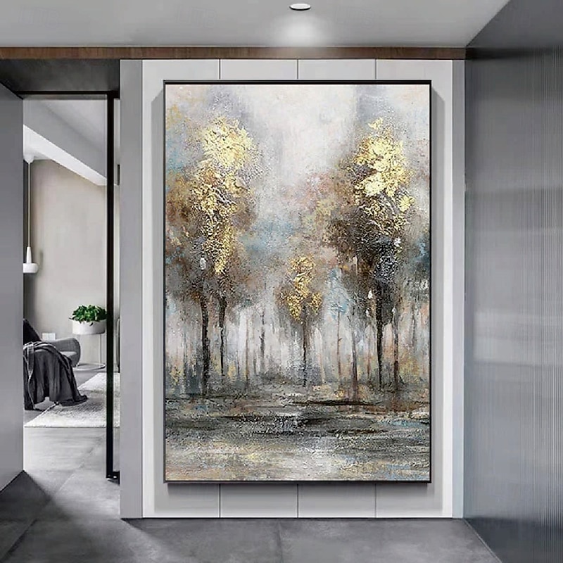 $116.99 - Large gold silver tree painting handpainted Abstract Floral oil painting handmade wall art Palette Knife Landscape Paintings Spring gold Flowers Painting Modern Decorative tree Paintings artwork 2025. Shop for cheap Still Life Paintings online? Buy at lightinthebox.com on sale today!