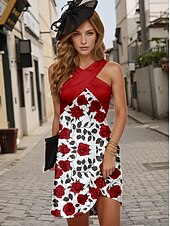 More information about Kentucky Derby Women's Mini Dress A Line Dress Halter Dress Backless Dress Elegant Vintage Stylish Vacation Casual Daily Regular Fit Floral Graphic Sleeveless V Neck Red Summer