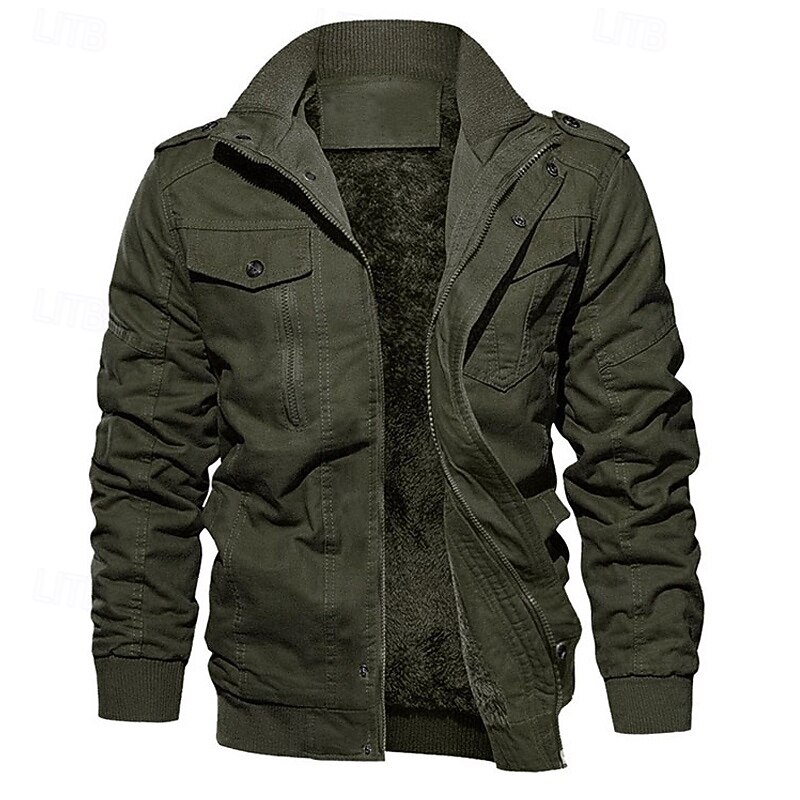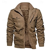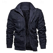 More information about Men's Winter Jacket Fleece Jacket Casual Jacket Daily Vacation Thermal Warm Pocket Fleece Fall & Winter Plain Fashion Streetwear Stand Collar Regular Black Navy Blue Khaki Army Green Dark Gray Jacket