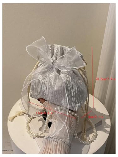 • Bucket bag for women features a delicate mesh design with a charming bow accent, adding a touch of elegance and femininity to its appearance