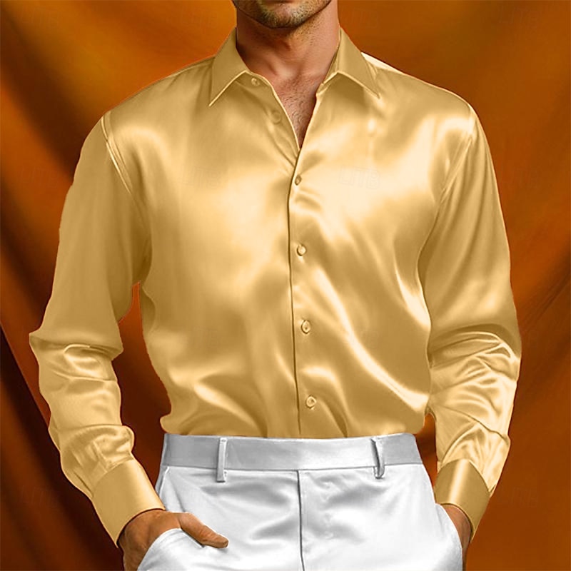 More information about Men's Shirt Silk Like Satin Shirt Dress Shirt Casual Shirt Button Up Shirt Plain Formal Wedding Black Yellow Red Navy Blue Long Sleeve Lapel Spring & Fall All Seasons Clothing Apparel Plain