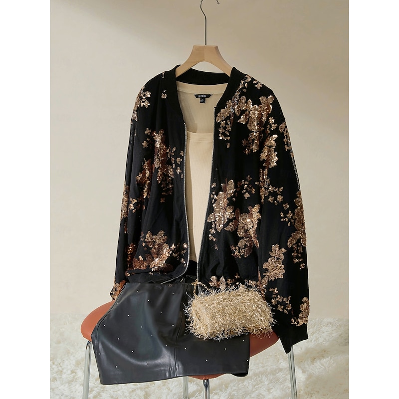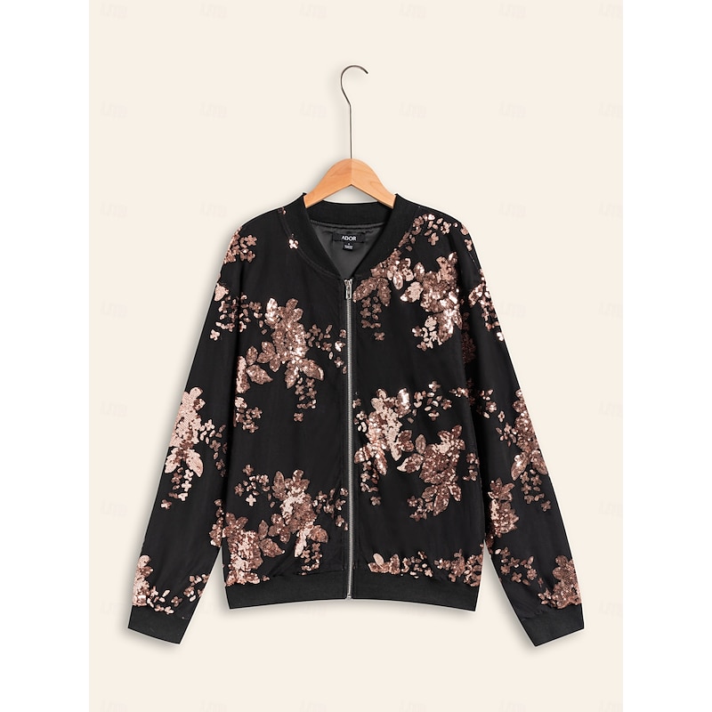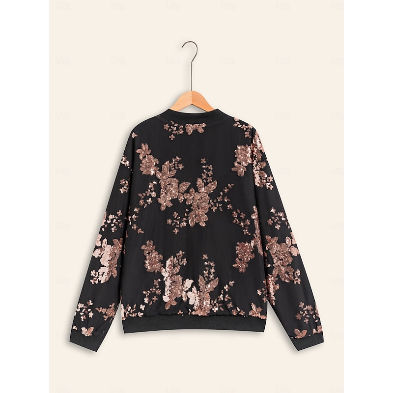More information about Women's Bomber Jacket Sequin Crew Neck Casual Party Evening Fall Winter