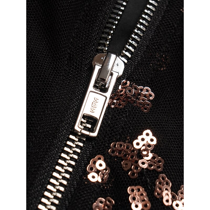 Women's Bomber Jacket Sequin Crew Neck Casual Party Evening Fall Winter 17