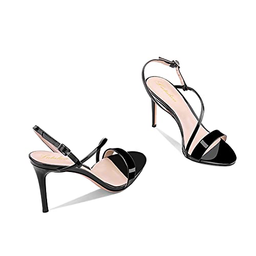 Lutalica W Women's Sexy Patent Leather Open Toe Single Strap Stiletto High Heel Slingback Dress Sandals For Party Evening Wedding 7