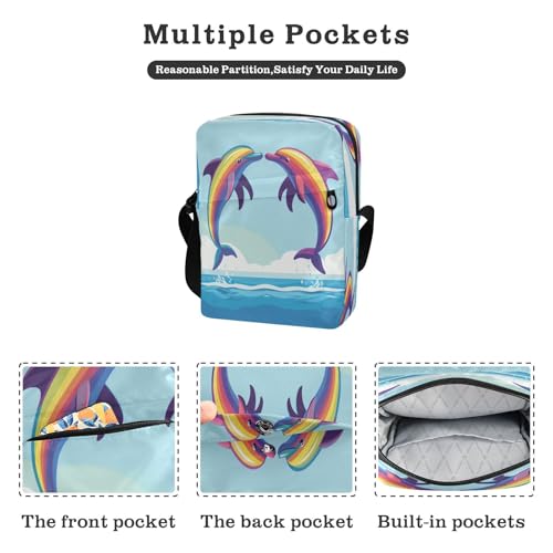 Small Messenger Bag Pride Dolphin Blue Crossbody Bag for Men Women Purse Fanny Pack for Outdoor Travel Business 6