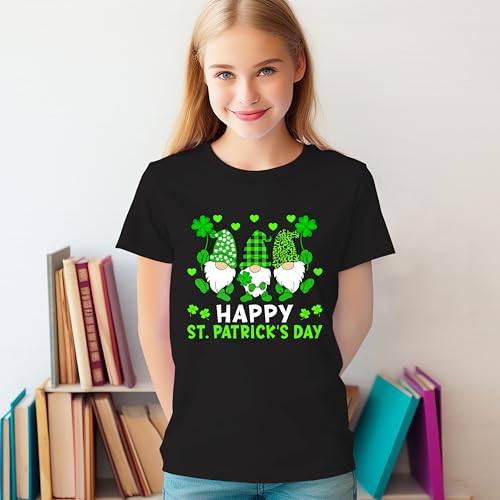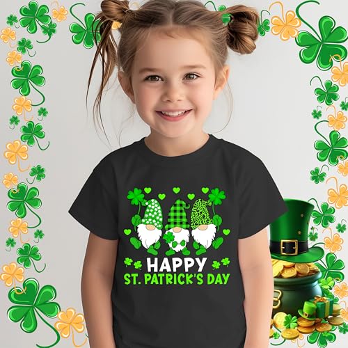 Happy St Patricks Day Three Gnomies Holding Shamrock Leopard Plaid Shirt for Women Girls Men Boys Kids Toddler 6