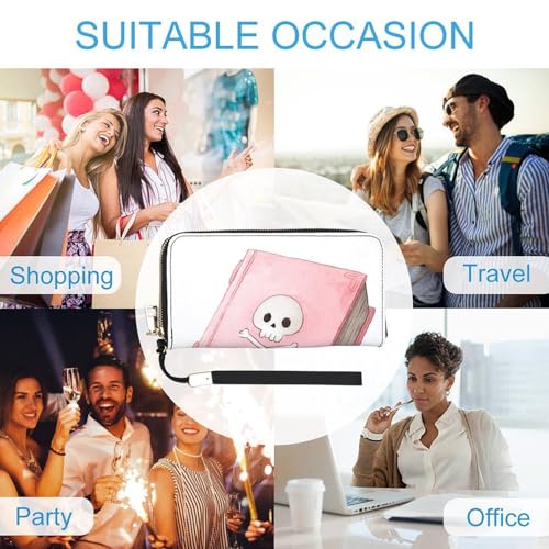 Pastel Pink Spell Book PU Leather Clutch Long Bifold Wallet, Coin Purse Credit Pass Case, Durable Card-Holder Money Storage for Women Men 1