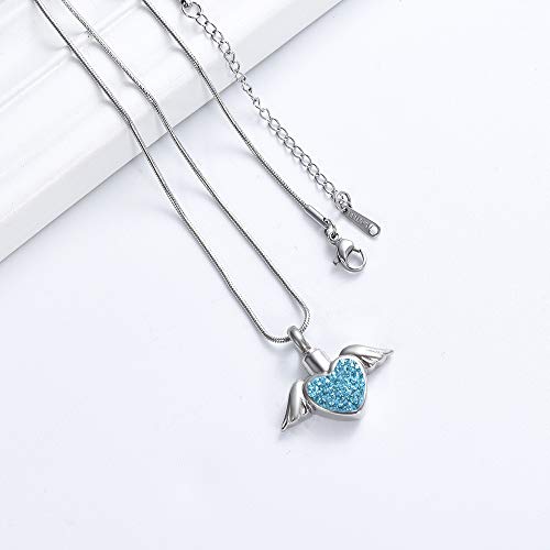Imrsanl Cremation Jewelry with Angel Wings Charm Locket Memorial Ash Pendant - Heart Urn Necklace Keepsake Jewelry for Women Girls