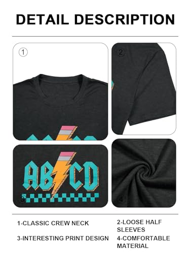 • Design: Alphabet student and teacher shirt, ABCD alphabet shirt for teachers, back to school shirt, kindergarten teacher shirt, ABCD pencil lightning rock'n roll teacher shirts, teaching life t shirt, summer classic loose tee tops.