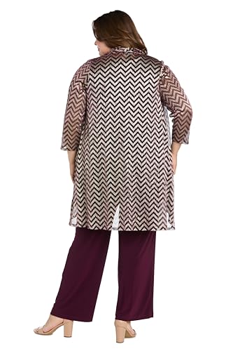 R&M Richards 3PC Pantsuit W/Mitered Stripe Metallic Duster & Detachable Necklace 3