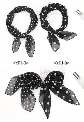 1950s Polka Dots chiffon scarf for Women - White and Black Polka Dot 50s Neck Head Square Scarf 5