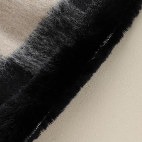 2PCS Baby Girls Plush Plaid Outfit Lapel Long Sleeve Fur Hem Button Jacket Shrug + A-line Skirt Sets 6