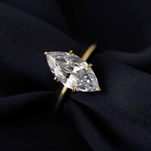 Marquise Engagement Ring for Women, 9ct 18K Gold Plated Solitaire Promise Ring with Cubic Zirconia in Sterling Silver 4