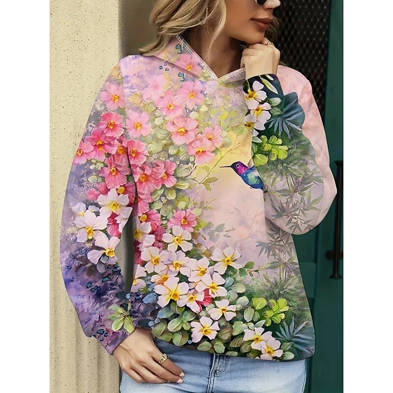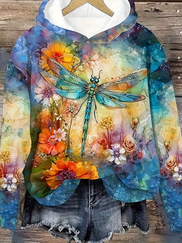 More information about Women's Hoodie Pullover Sweatshirt Oversized Long Sleeve Casual Graphic Floral Animal Butterfly Vintage Retro Hooded Regular Tops Street Dailywear Print Pink Blue Spring Fall Winter