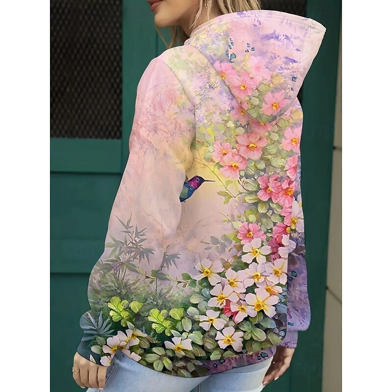 Women's Hoodie Pullover Sweatshirt Oversized Long Sleeve Casual Graphic Floral Animal Butterfly Vintage Retro Hooded Regular Tops Street Dailywear Print Pink Blue Spring Fall Winter 7