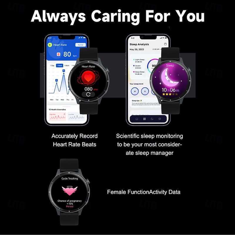 More information about V15Z Smart Watch 1.39 inch Smartwatch Fitness Running Watch Bluetooth Pedometer Call Reminder Activity Tracker Compatible with Android iOS Men Long Standby Waterproof Media Control IP 67 22mm Watch