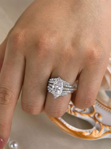 HOT ! 3.5ct Wedding Rings Set for Women,925 Sterling Silver AAAAA CZ Gemstone Vintage Marquise Cut Engagement Ring Sets with Insert Wedding Ring for Travel,Daily,Proposal,Birthday