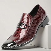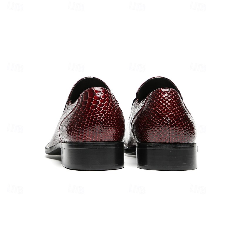 More information about Men's Genuine Cowhide Leather Burgundy Snake Pattern Slip-On Loafers with Metal Buckle – Elegant Party and Evening Dress Shoes