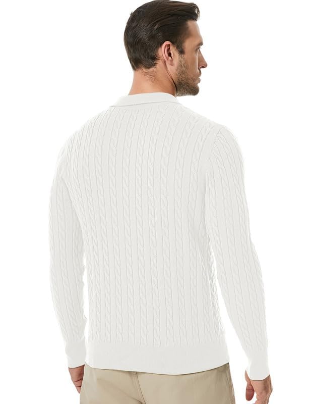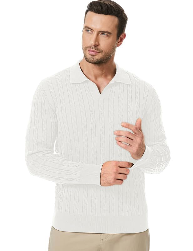 HOT ! Men's Sweater V Neck Cable Knit Pullover Sweater Casual Long Sleeve Collared Twist Patterned Polo Sweaters