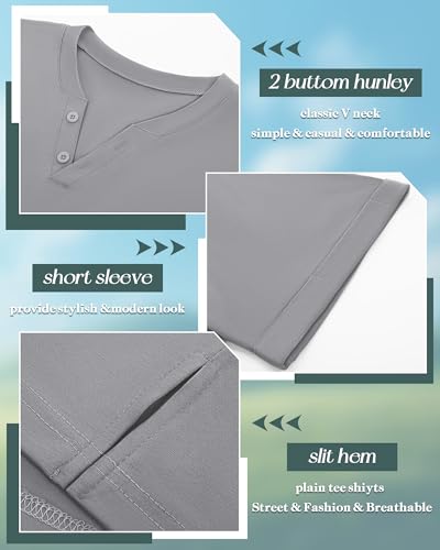 Huukeay 3 Pack Big and Tall Men's Short Sleeve Henley T Shirts Cotton Summer Casual Basic Tee Button Lightweight Stretch Top