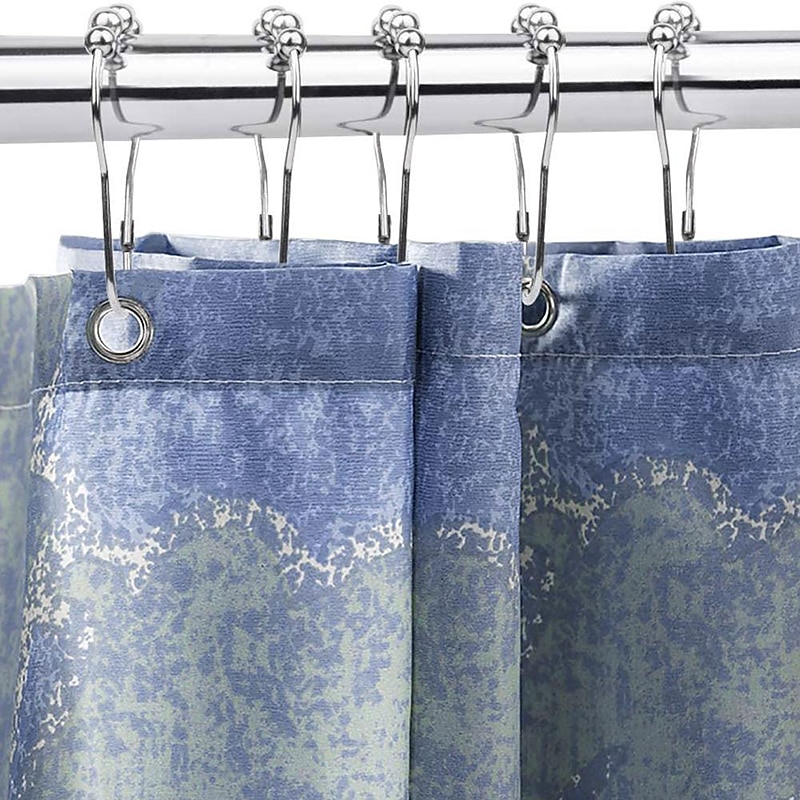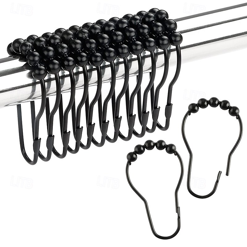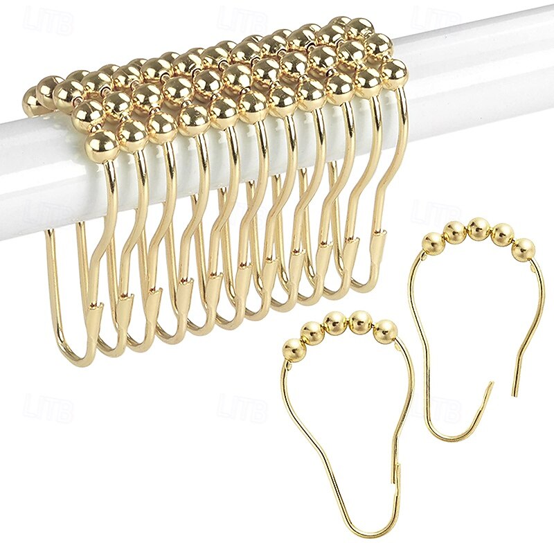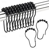 12 pcs Stainless Steel Curtain Hooks Bath Curtain Rollerball Shower Curtain Rings Hooks 5 Rollers Polished Satin Nickel Ball 5