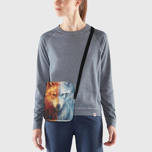 Crossbody Bag Fire Flame Wolf Animal Messenger Bag for Women Men Purse Shoulder Bag Satchel Bag with Adjustable Strap 214A7161 5