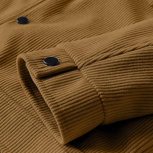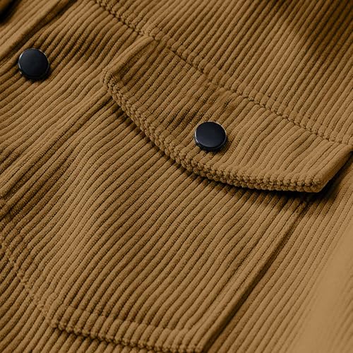 Cambkatl Men's Fleece Lined Vintage Corduroy Tactical Jackets - Lapel Button Down Long Sleeve Loose Winter Coats with Pockets 7