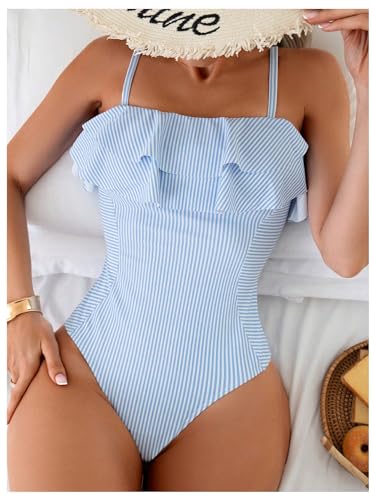 Floerns Women's One Piece Swimsuit Ruffle Trim Striped Print Monokini Swimwear 1