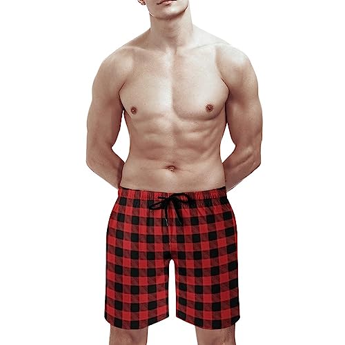 Red Buffalo Plaid Mens Swim Trunks Quick Dry Beach Shorts Casual Sports Board Shorts Swimwear with Pocket 1