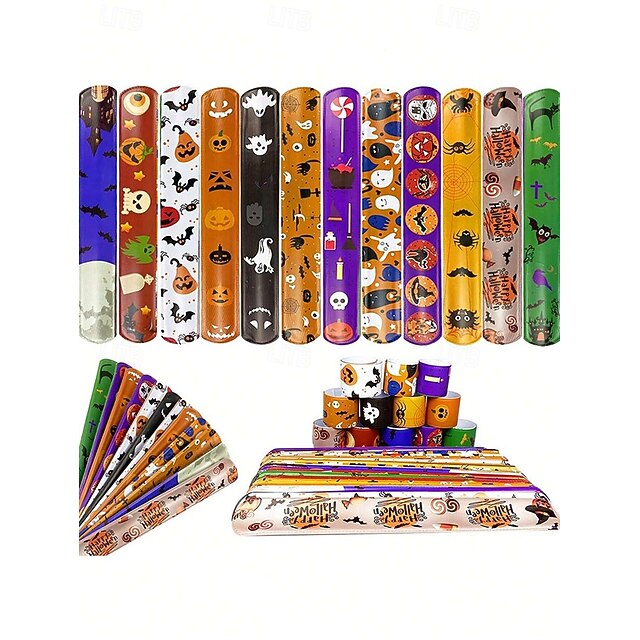 $7.99 - 12pcs Halloween Slap Bracelets for Children Birthday Gift Snap Band Bracelets for Girl Boy Game Toy Party Party Favors School Goodie Bags 2025. Shop for cheap Halloween Mask & Props online? Buy at lightinthebox.com on sale today!