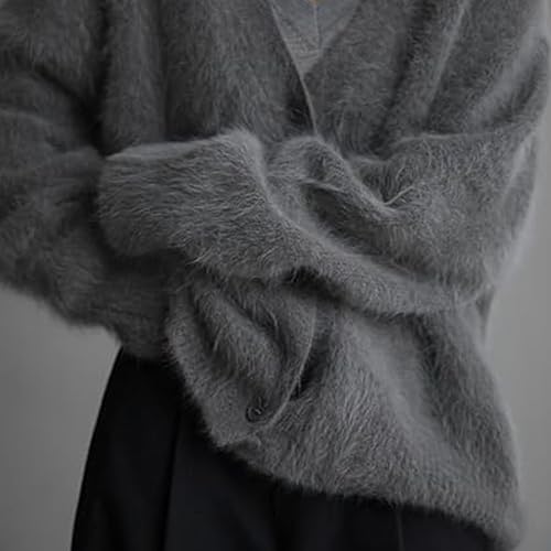 sought-after ! Womens Fall Sweaters Fuzzy V Neck Cardigan Sweater Long Sleeve Knit Sweaters Relaxing Fit Furry Outwear