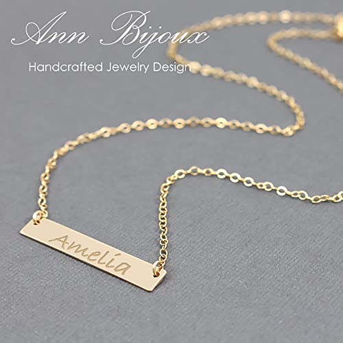 AnnBijoux Personalized Nameplate Necklace 14K Gold Filled Bar Pendant Laser Engraved Name Jewelry Birthday Gift For Her
