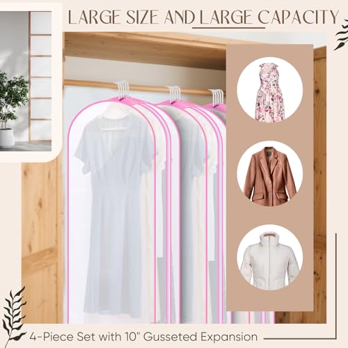Chunful 60" Clear Garment Bags for Hanging Clothes 4-Pack Dust-Proof Closet Storage Covers with 10" Gusseted Design & Smooth Zipper for Dresses, Coats, Suits, Women's Home Organization (Pink)